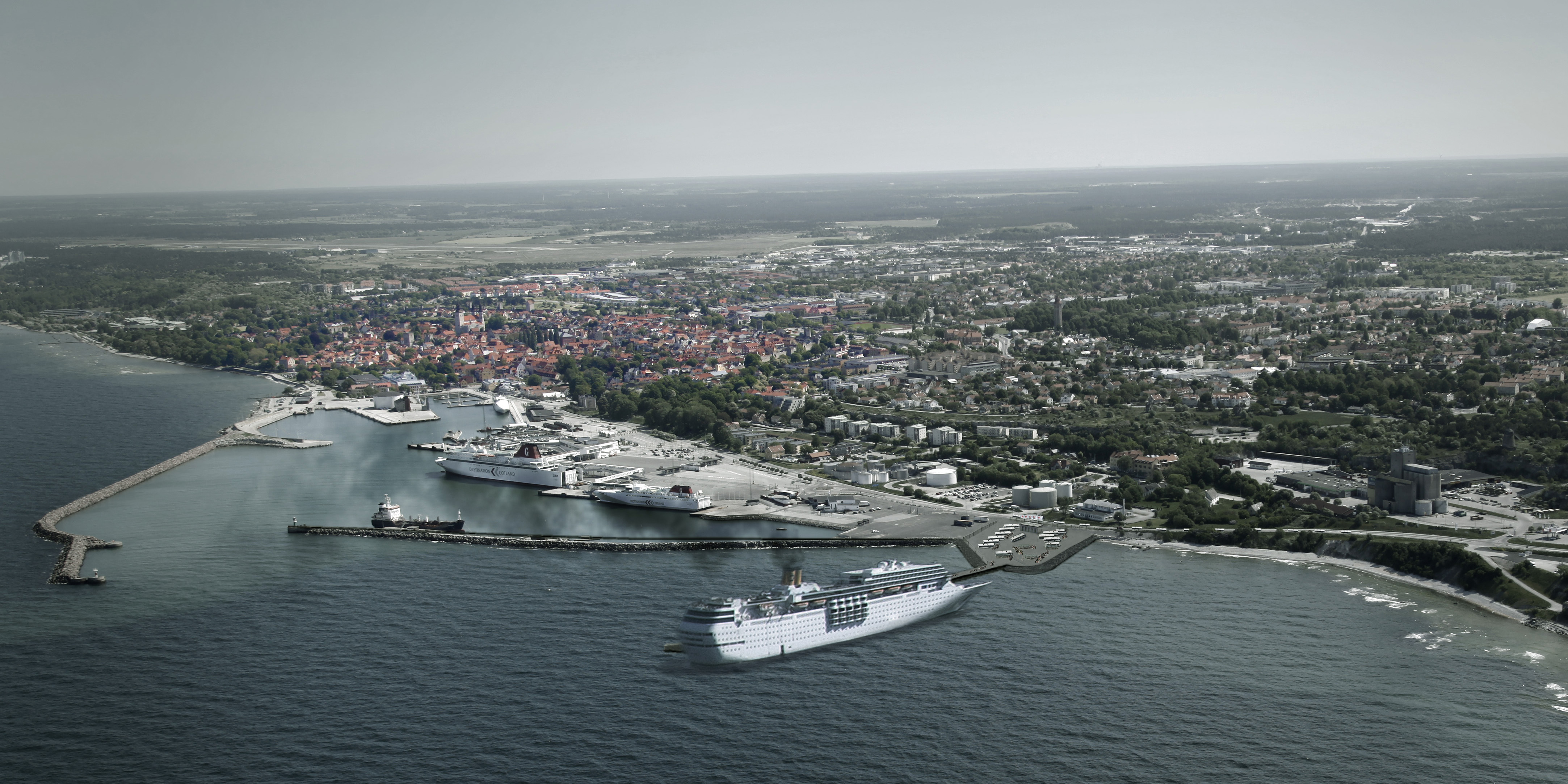 I Visby hamn, vår navelsträng till fastlandet och en viktig plats för möten och avsked, planeras för en ny kryssningskaj med plats för två fartyg. Avtalet är påskrivet och snart börjar det byggas. Ett danskt företag vann entreprenadupphandlingen och blir de som får omsätta våra pengar. Hamnen ska stå färdig 2018. Ett stort fartyg rymmer 4 000 passagerare. Under en säsong räknar man med 150 anlöp jämfört med dagens 60. Det innebär 250 000 resenärer per säsong. Varje vecka blir som en Almedalsvecka.