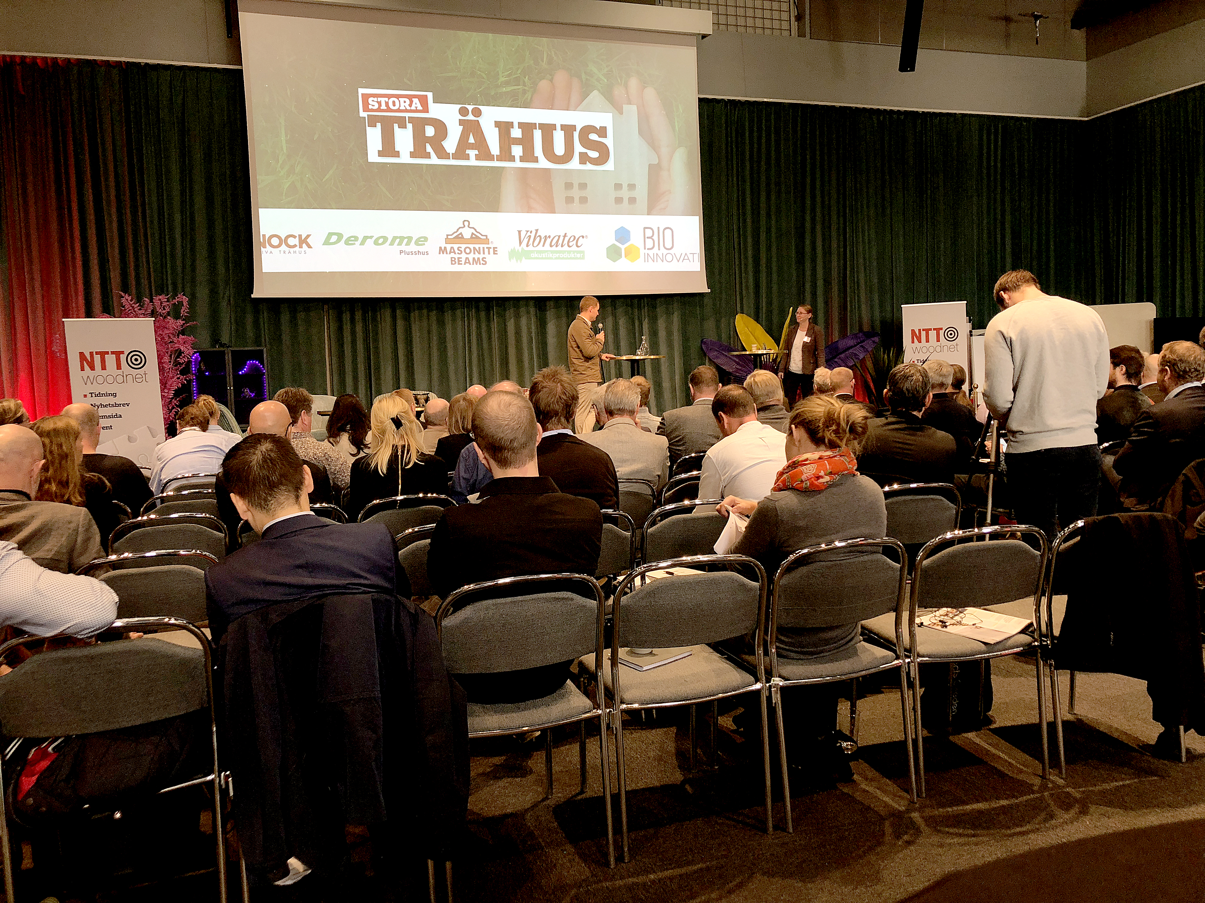 ”Bra träarkitektur är förmodligen det mest hållbara vi kan bygga” Nyheter Webb-tv Runt 100 träentusiaster från företag och föreningar fanns på plats för att nätverka och inspireras av varandra. Foto: Anton Andersson